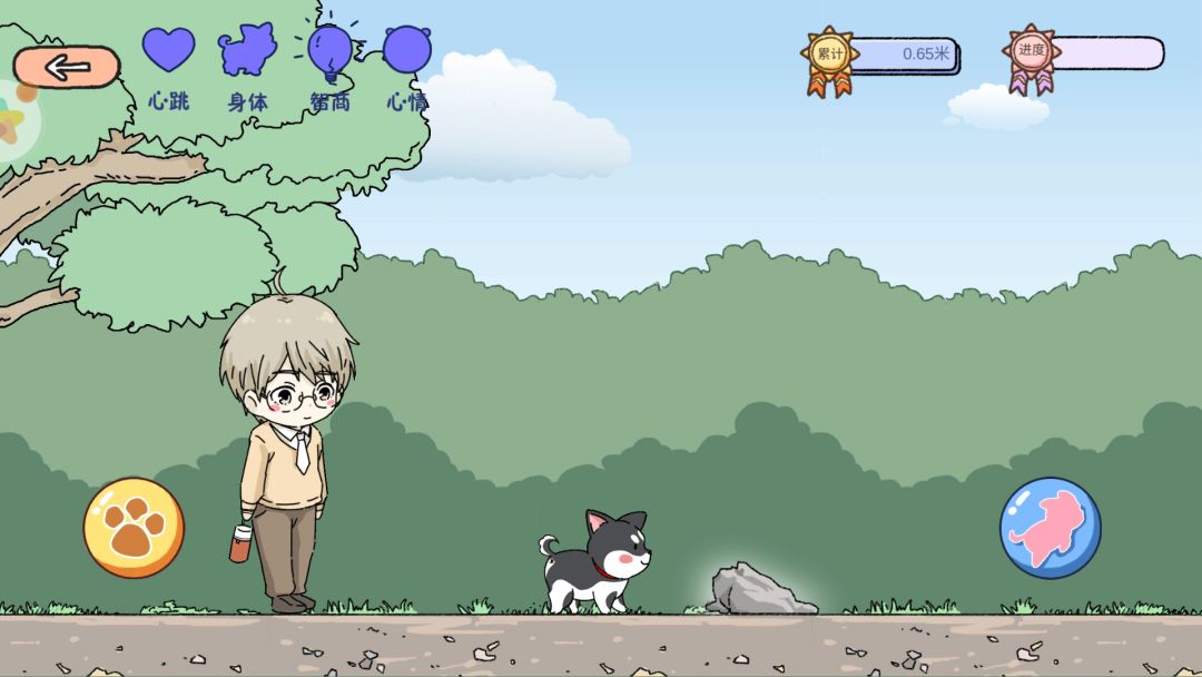 一起遛狗的某人也会有话说哦,细心选择回答会增加心跳值哦~也会影响狗狗的心情哦~