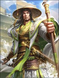图片版权来源——三国杀同人形象:一手持兵书、一手持船橹,带斗笠着白衣。