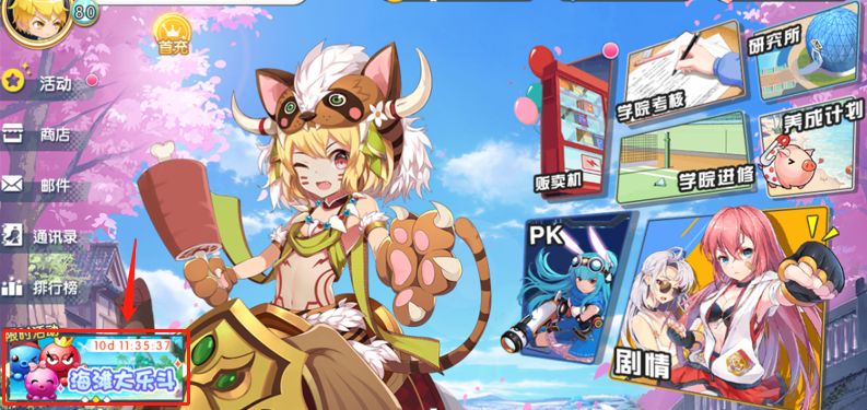本次开启的海滩大乐斗活动属于限时活动,所以活动的入口是在游戏主界面的左下方哦~