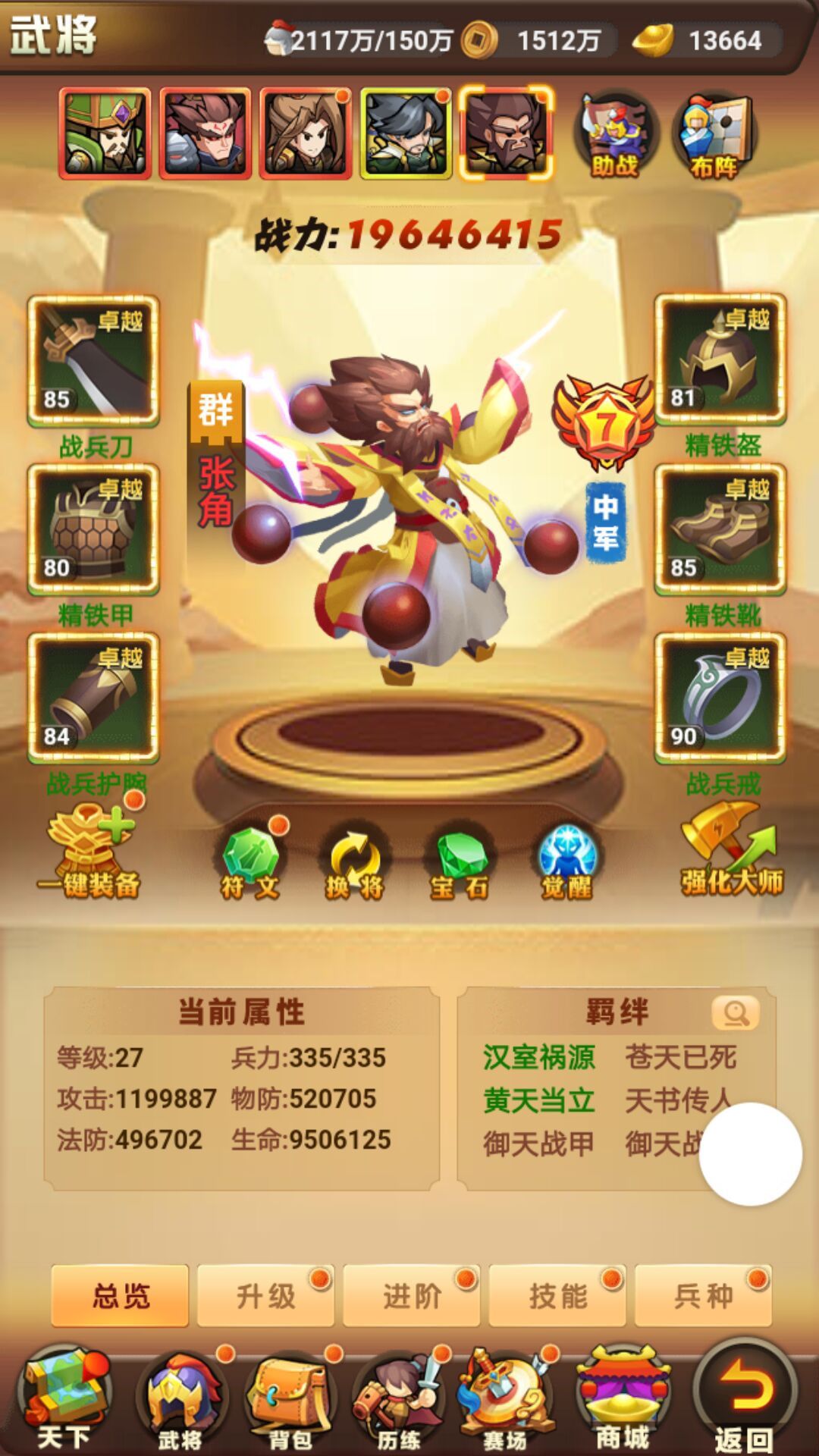 举个例子,无论是过图还是打竞技,只要你是按照我说的方式培养,1亿的张角绝对打得过两三亿的吕布阵容,并且前中期过图简直神速,可以说是平民最佳选择没有之一了。