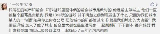 玩家“一笑生花”在游戏中就遇到了“间谍戏”的情况。她和游戏中老公的帮会城市是敌对的。她一开始并不知道这些情况。后来,因为本城的一位玩家竟然想让她偷上老公号偷矿,她果断退城加入了“老公”的城市。