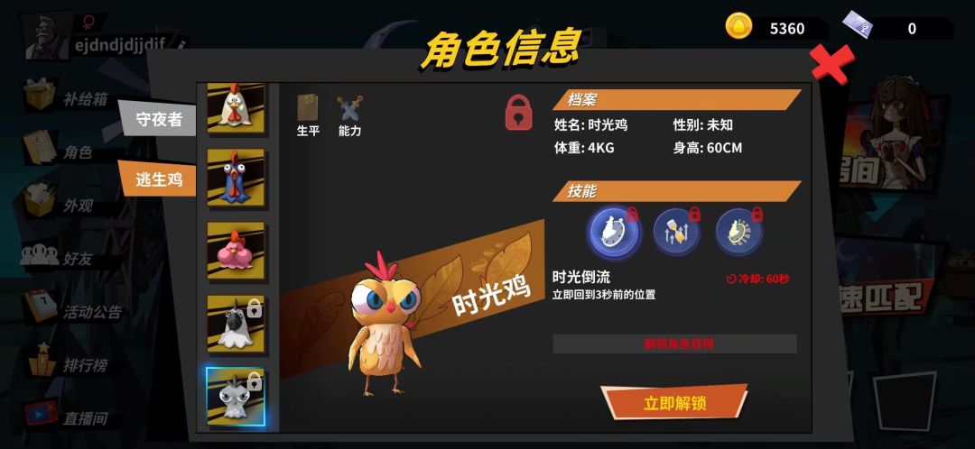 이곳에서 중요한 캐릭터에 대해서 말하자면 각 닭과 문지기의 스킬을 확인하고 새로운 캐릭터를 획득할수있는 곳입니다.