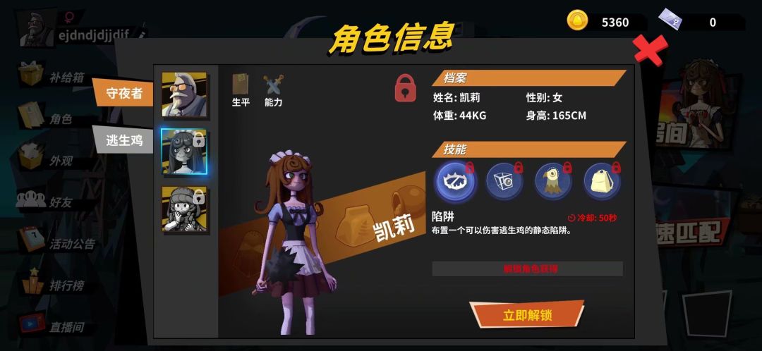 스킬들이 나름 괜찮은 편이죠? 하지만 스킬이나 캐릭터 잠금해제할때는 굉장히 많은 티켓이 필요하므로 ㅎ..노가다가 꽤 필요한 편이지만 게임 자체가 꽤 재미있기때문에 솔직히 빨리 모이는 편이었습니다. 제5인격 고인물이시라면 빠르게 얻으실수있을듯합니다.