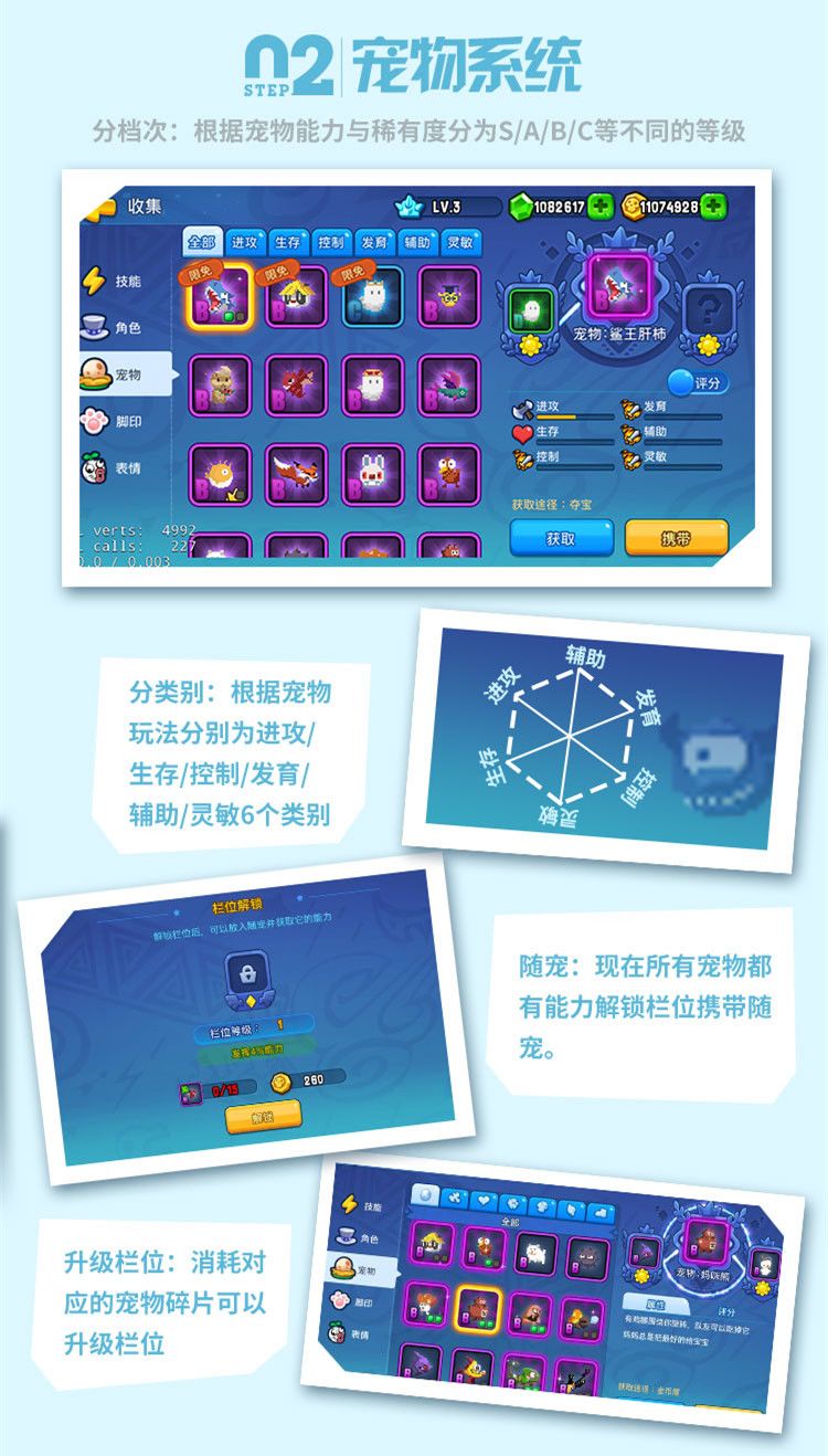 在玩家对局中发挥举足轻重作用的宠物,随着此次版本的更新迎来了重大的改变。首先是对不同宠物有了明确的等级划分,按照稀有程度将宠物分为E-D-C-B-A五个级别,珍惜度依次递进。