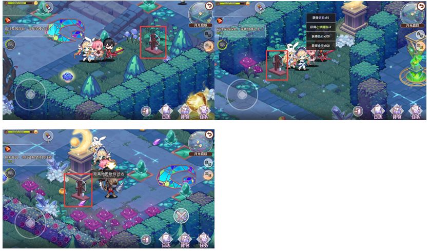 有的队长大人可能已经注意到了,月光庭院的宝箱上面会顶着一个王冠。当我们每次打开宝箱时,会有一半的概率直接获得宝箱奖励,一半概率会刷新出【拟态怪物】,打败怪物就可以完成探索任务。