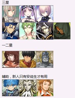 低星从者推荐没有充能低星的出场率很少,都是打主线和过渡用,如果缺少相应职介可以练以下角色