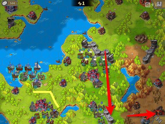 下路海岸线会有英国无名将攻击,适当消耗即可。城镇他占了下回合会动,我们再抢回来即可,没必要被他消耗杂兵。