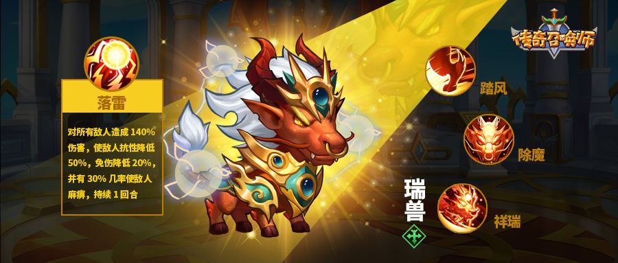瑞兽即将上线,技能效果可能略有改动,最终属性及效果请以正式服为准。