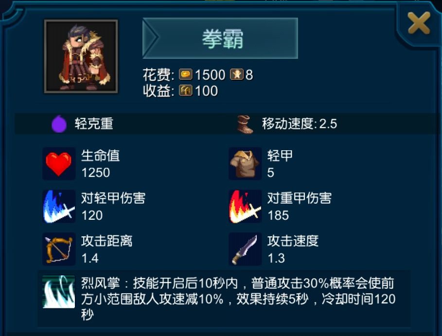 拳霸:2中效打反手,理由:技能效果;3套路克制重甲,理由:极端克重单位。