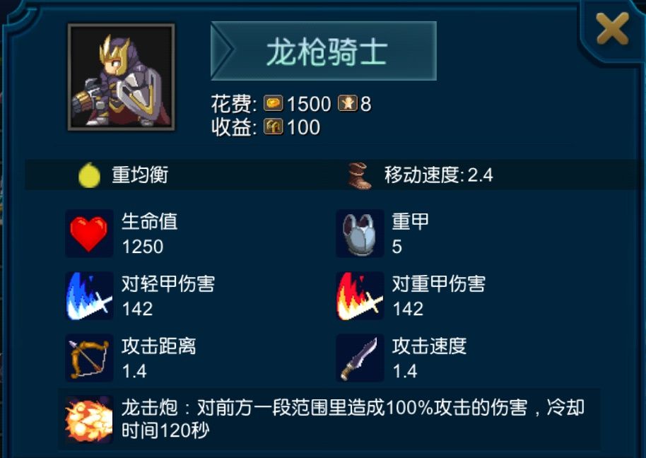 龙枪骑士:1中效清兵快,理由:技能效果,均衡单位。(移动速度有一丁丁慢影响较小但使用时注意)