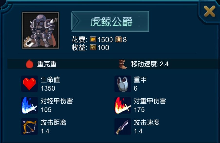虎鲸伯爵:2强效打反手,理由:高甲超高血;3套路克制重甲,理由:极端克重单位。(移速有一丁丁慢影响较小但使用时注意)