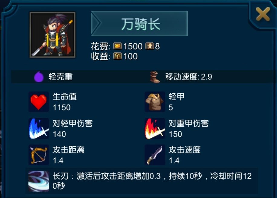 万骑长:1强效清兵快,理由:技能效果,偏均衡单位且面板伤害略高。(移动速度有些快,组阵时请务必注意)(目前偏强单位)