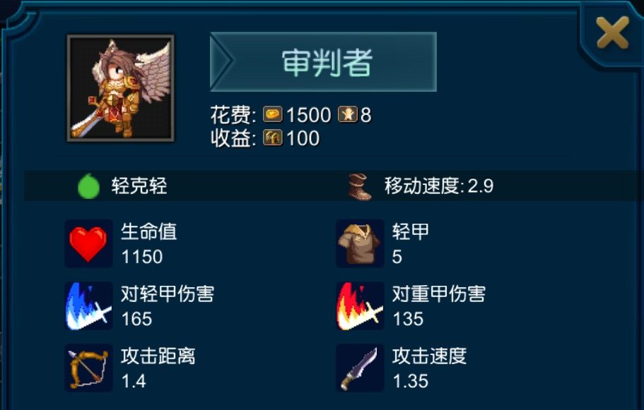 审判者:2弱效清兵快,理由:偏均衡单位(但高伤低攻速其实不如低伤高攻速,米拉奇的护甲属性是效果略差的,对高攻速单位有好处……除非可以伤害过线,不过伤害线方面重甲线高于轻甲,所以后面双过线的单位我会标注)。(移动速度有些快,组阵时请务必注意)