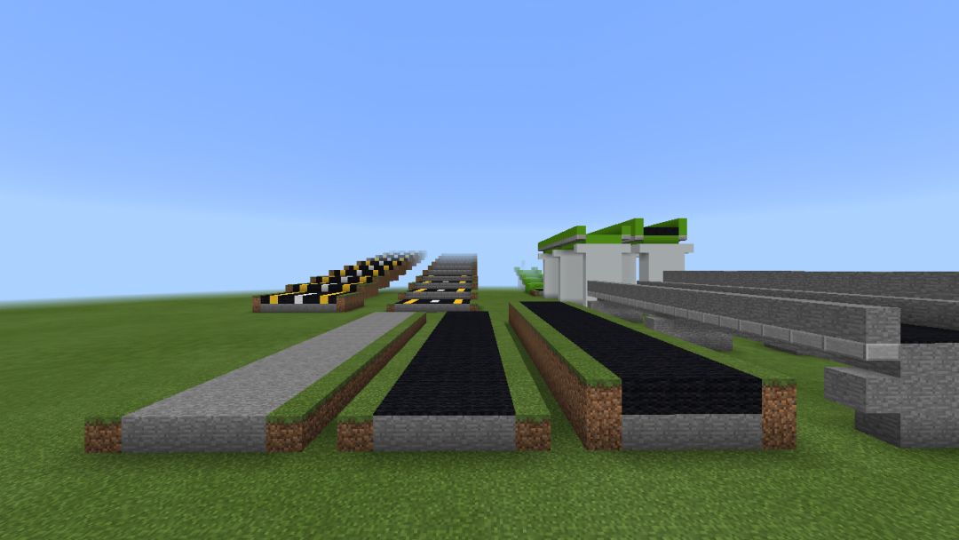 路面:可同步加宽车道;也可同步增加车道;可使其分离为两条方向相对的两车单行道(仅限特殊情况下以及地势陡峭的山地地区),此举需在两条车道的左侧(以车道行驶方向为准)多加宽2格,并放置栅栏(靠近中央的一格),铺设黑色地毯/羊毛(另一格)以确保各单行道的结构完整。