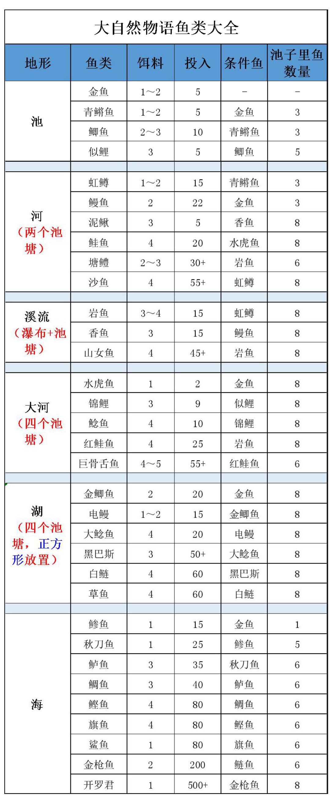 渔具的解锁 1.每种类型的鱼钓10个。 2.除了池塘之外,还要用连接开启河流、溪流、湖泊等地形,在那里钓鱼。 3.获得相应的称号, 达到(客流量和持有金钱)的要求开启新称号后,再满足上述条件才能解锁新钓具。