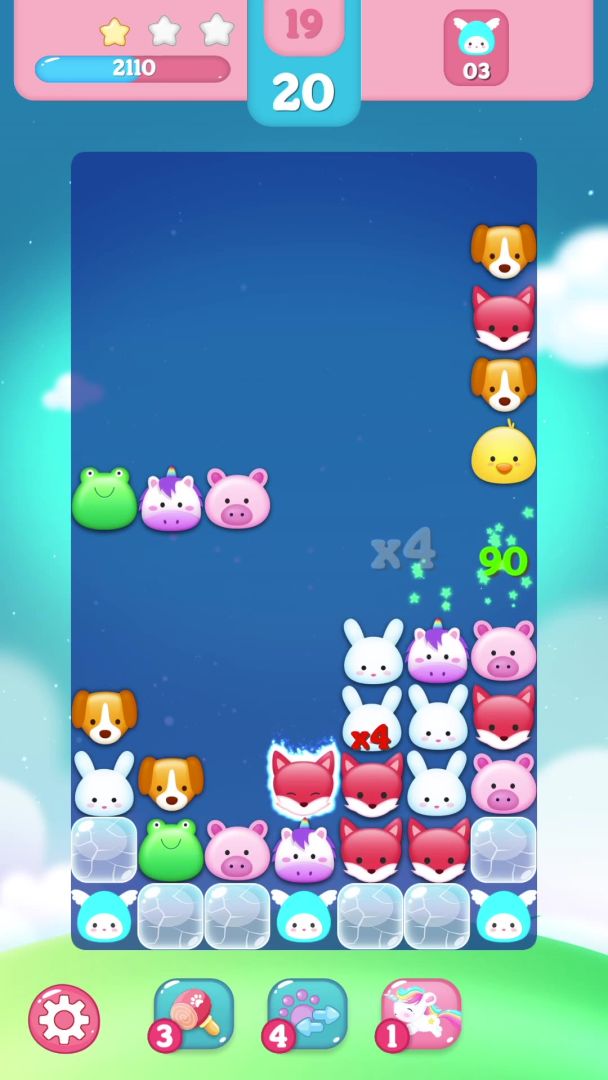 2.善用连击,连续快速拖拽动物,连击的好处很多,除了可以迅速聚集更多动物,还有可能在下落过程中被之前的特殊动物效果消除.用的好,对提高分数帮助很大.