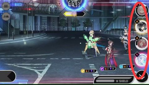然后战斗除了指定意外,在右下角会有HELPER头像点开,可以释放助战的技能,每个角技能也不同,助战也有CD 。