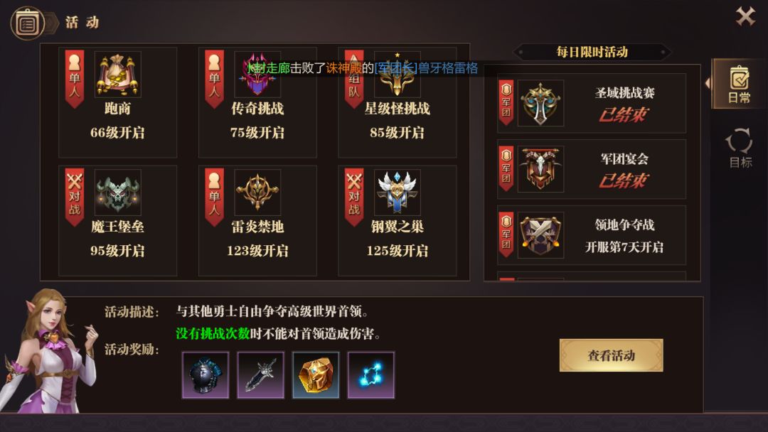 直接上图,看看军团任务和日常任务,还有等级没到还没开的那些.....