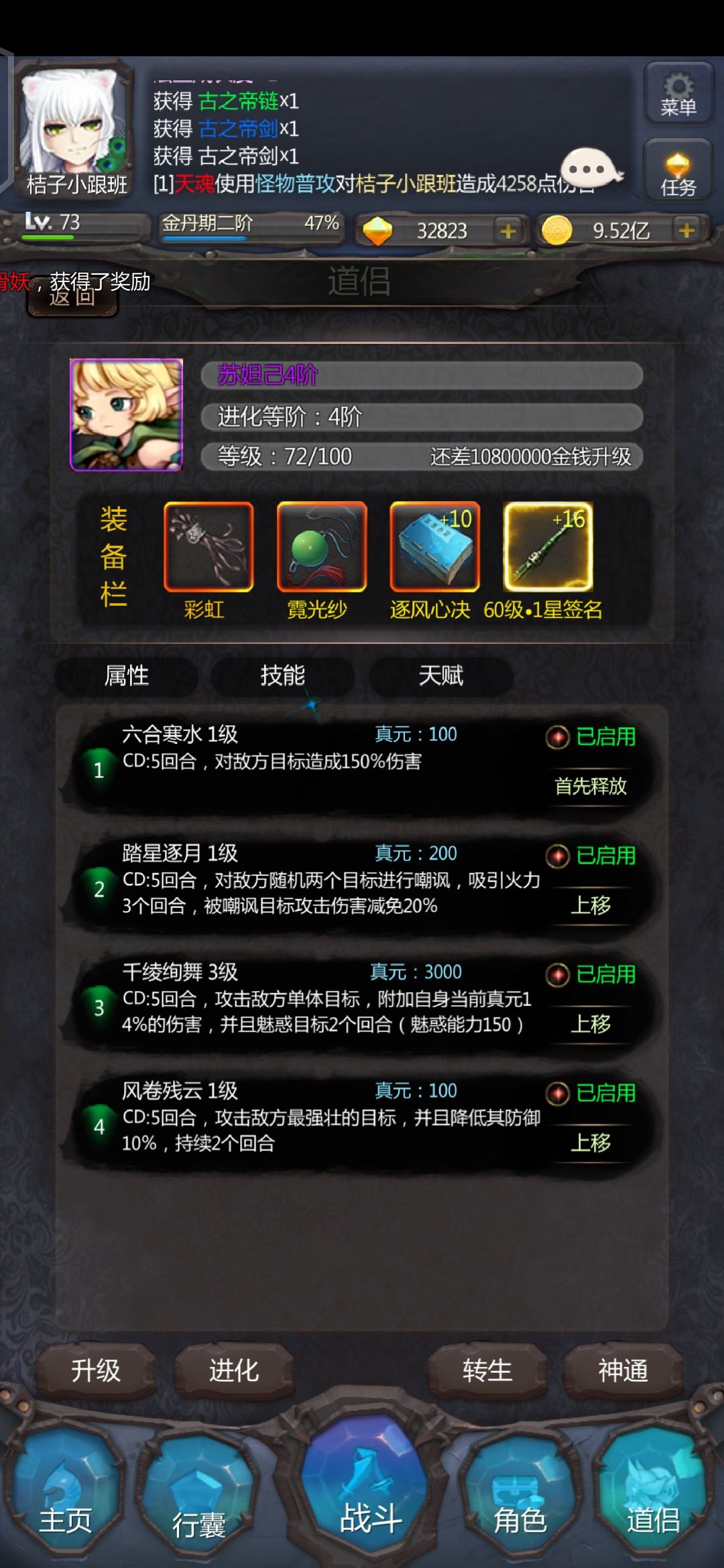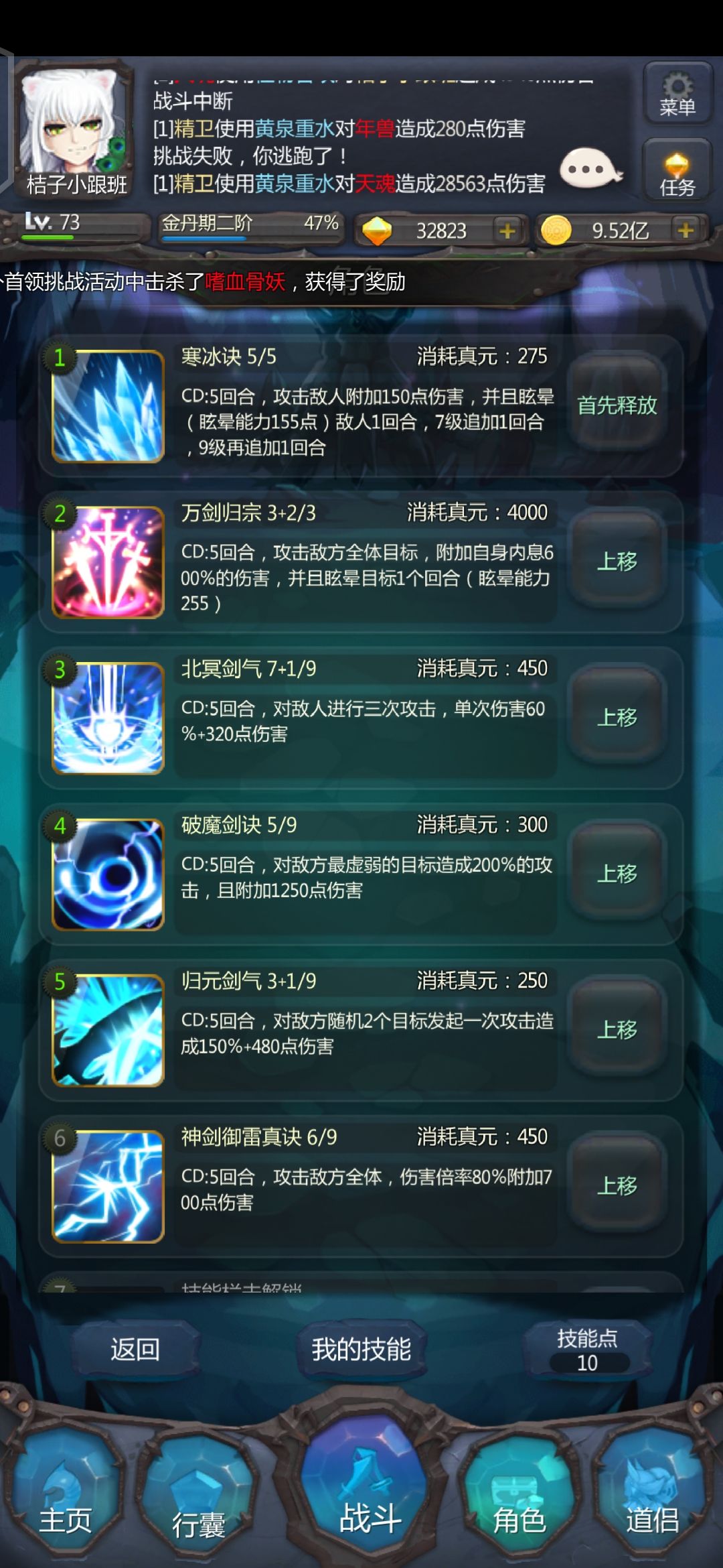 新手打老鼠年兽技能给你们配好了,我打了大概26回合,后面是没蓝了。亲测。(年兽)