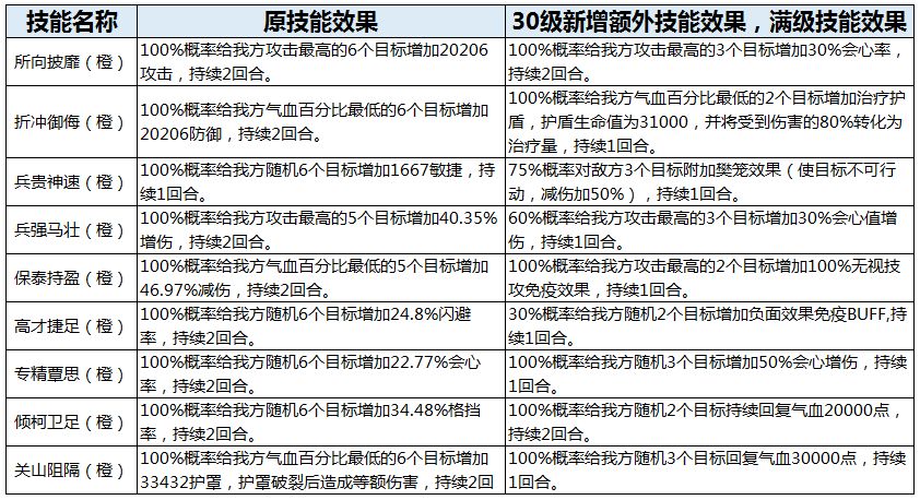 1.4)皇子部分橙色技能优化:(技能等级30级后新增额外效果,以下技能数值为皇子技能等级60级的数值)