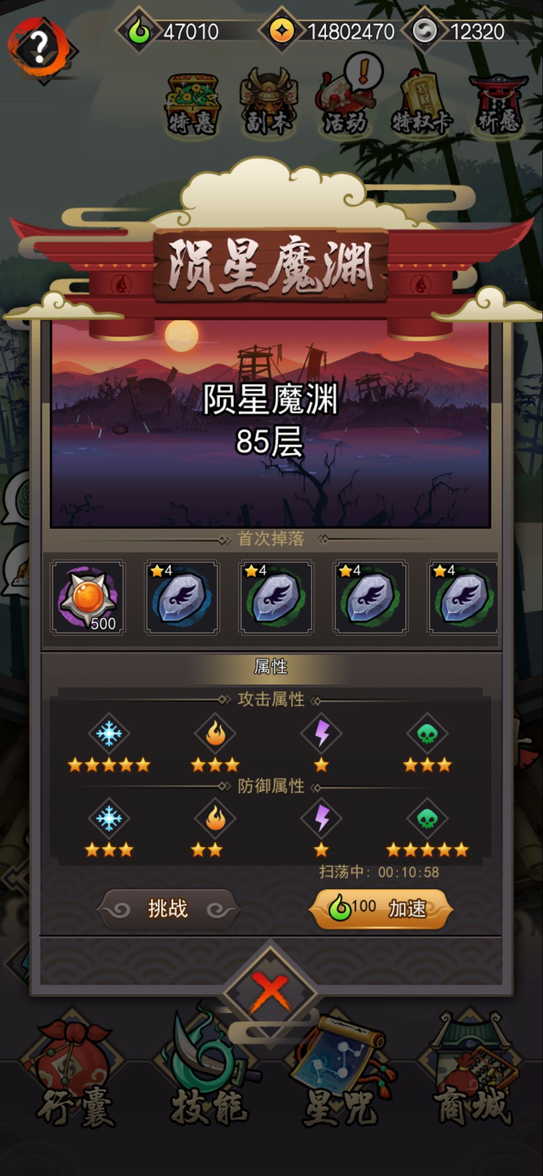 然后是技能,当然是扛BOSS技能的两个:冰箱和虎贲,然后带一个炎破击昏强敌怪打断他的技能。为什么这么带大家都清楚,因为强敌怪和BOSS技能秒一切,运气不好技能用完了,就只能看运气闪避了。