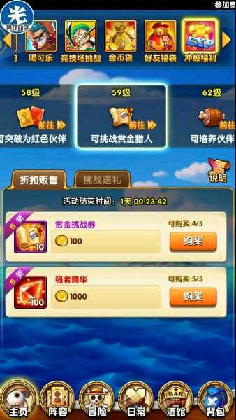 59级福利,赏金挑战卷,强者精华,不用说强者必买,赏金看是不是节日活动期间,如果是可考虑买一买,不是的话没必要,每天商店买两个等节日到了也能够130次。