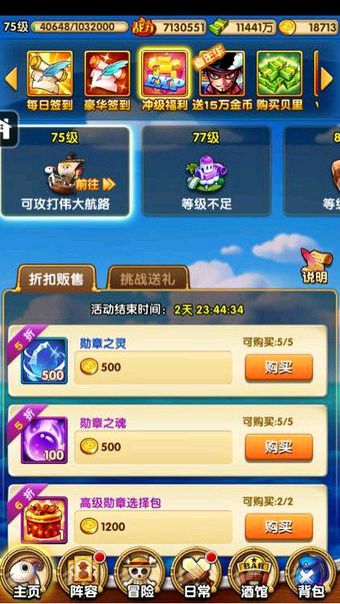 75级福利,新东西,勋章开启,首先高级勋章选择包两个必买,勋章之灵必买,剩下看金币,如果金币允许建议全扫完,勋章之魂可以不买,因为每次节日活动第三天有四折的勋章之魂,这里五折