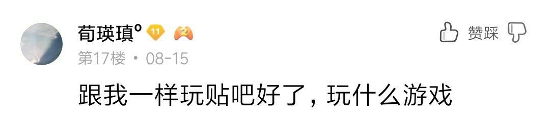 在贴吧氵了一个多月,虽然里面氛围很好,人也很友善,人均也都是咸鱼...但是我发现他们对游戏并不看好,很多人也并不觉得这个游戏很好。然后我在2019.7.3发了人生之中的第一个洗地贴。