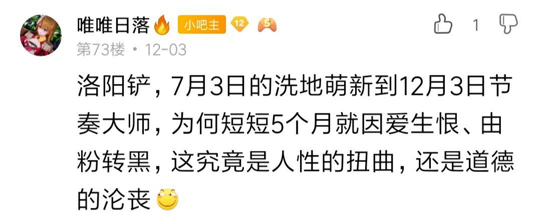之后,我就在贴吧当了一个多月的氵逼了...感觉那个时候氵贴挺开心的,以前自己只是一个观察者,然后慢慢就变成了一个参与者。