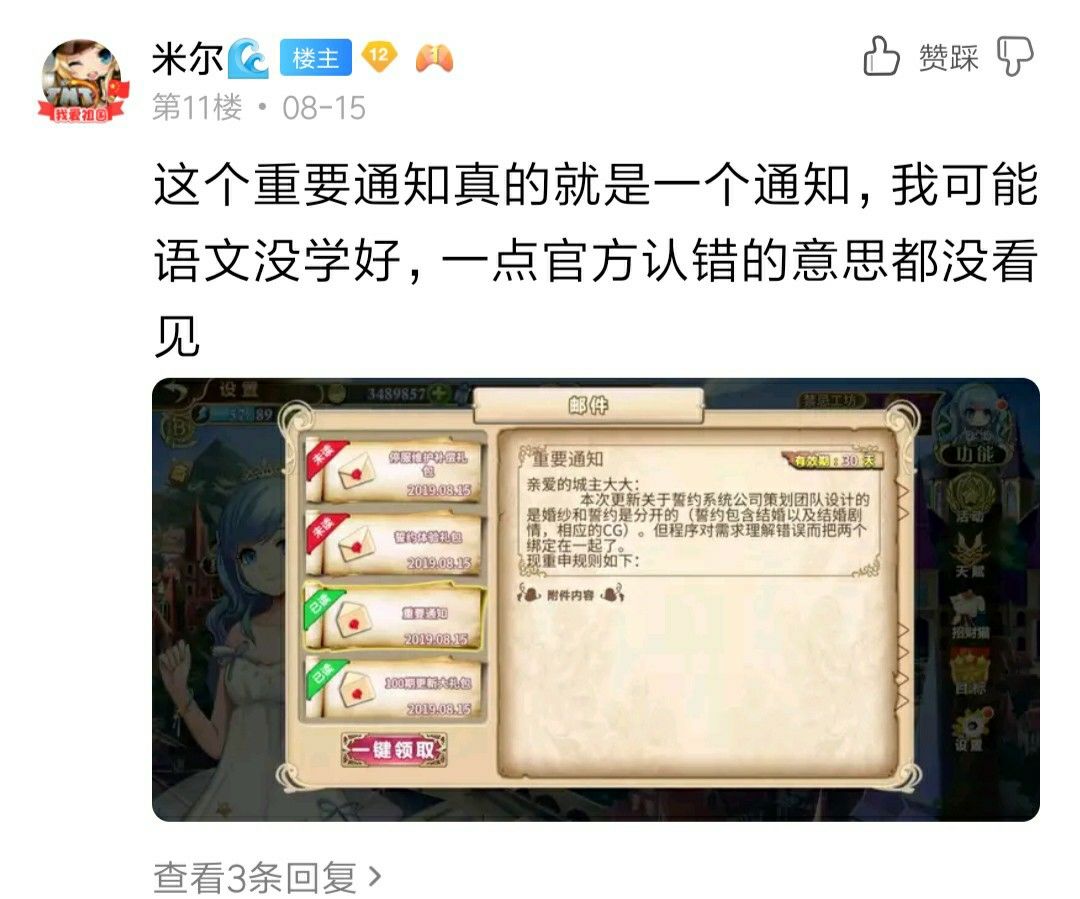 再然后,老中药站了出来。也许他只是一个出来替死的。反正怎么样都无所谓了。我想要看到的是诚意,在游戏里面的邮件中我没有看见诚意。在老中医的帖子里我还是没有看到诚意。