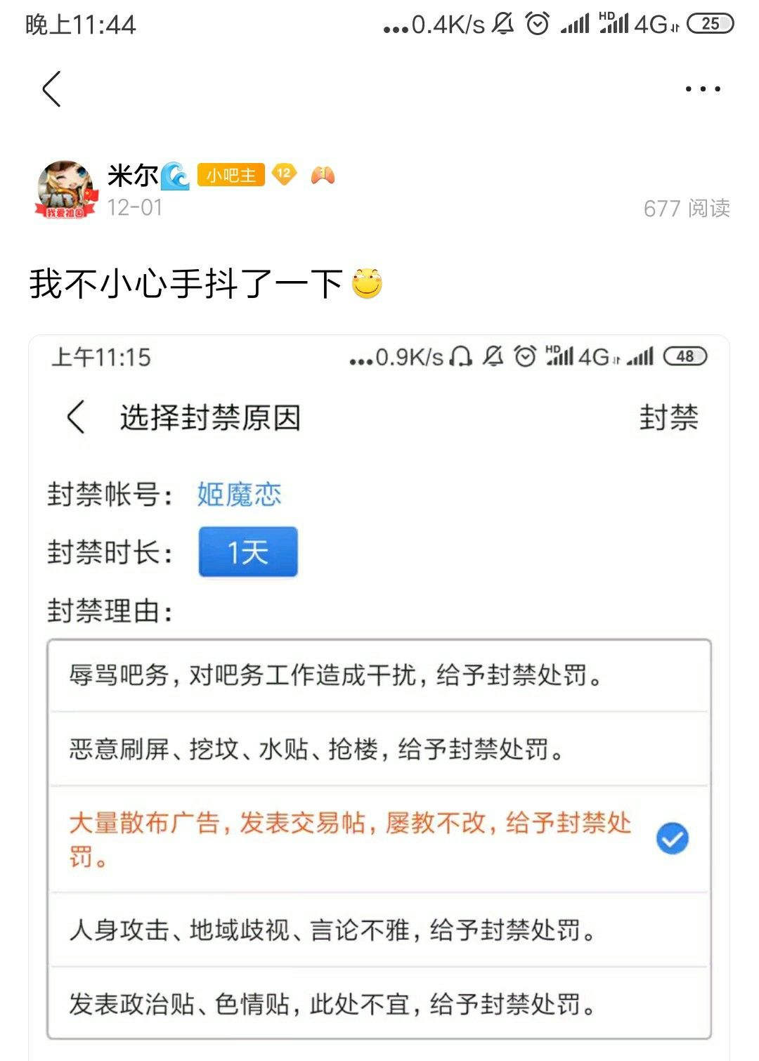 虽然我一直想把姬魔恋整没,奈何一直找不到机会...唉期间我又从她那里学到了一个到了,吧主,小吧主,一字之差,但是权利却完全不对等。我封禁她一天,她反手就把自己解封了,然后把我关进去...