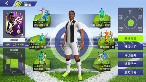 马图伊迪的技能是抢球机器·逐+球场坦克·黯+火线封锁,被动是1114抢断和492传球,是一个典型的抢断型中场,虽然球场坦克技能略显尴尬,但是任然是非常不错的抢断型中场。