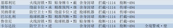 技能组合是抢球机器·逐+火线封锁·寂+精准预判,被动是拦截620,抢断494,传球494,属于兼具拦截和抢断能力的防守中场,仅仅是中路高球防御能力不足。
