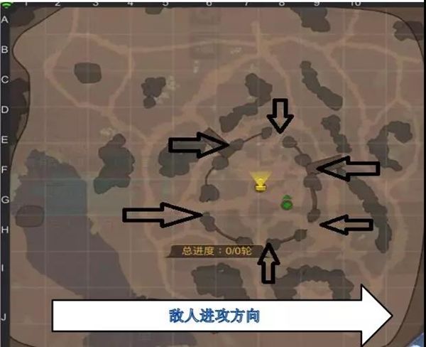 敌人整体一共6个进攻方向,我方有机枪炮塔协助。整体时间大概12分钟。