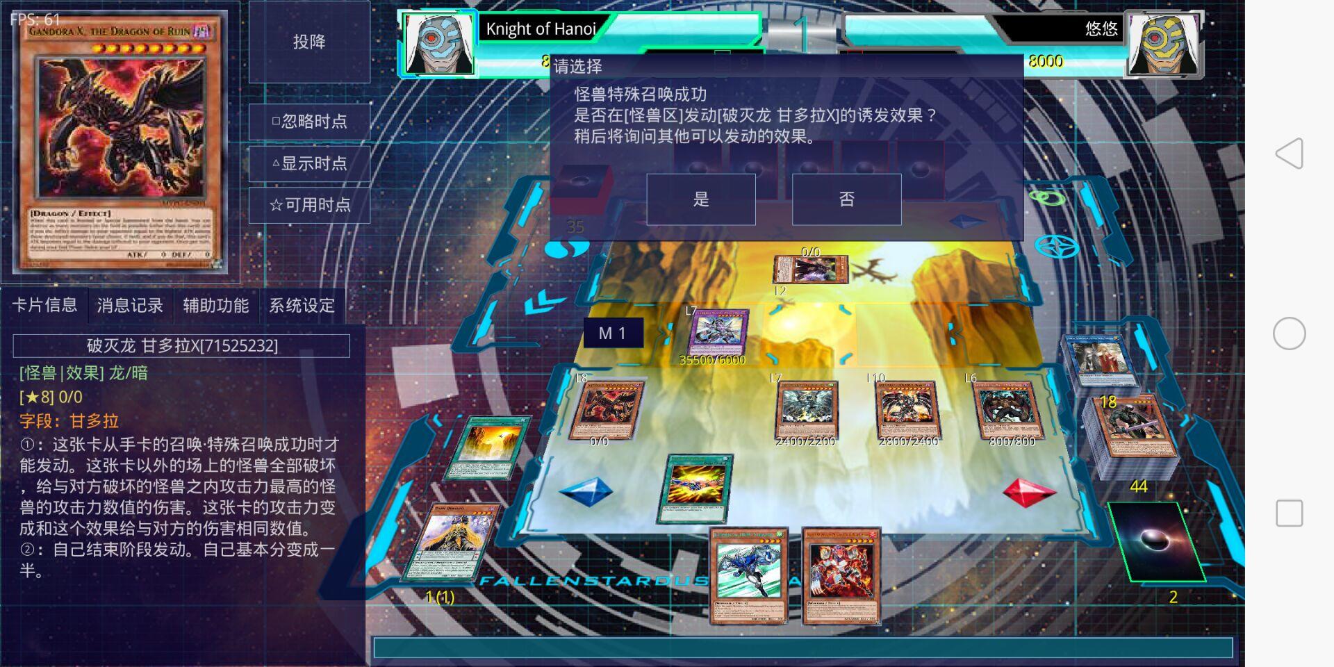 利用甘多拉造成35500点LP伤害,完成otk,这是一场猜拳游戏,对面没手坑打断,基本凉凉。
