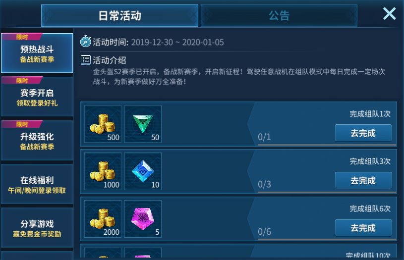 活动一:元旦预热战斗,备战新赛季