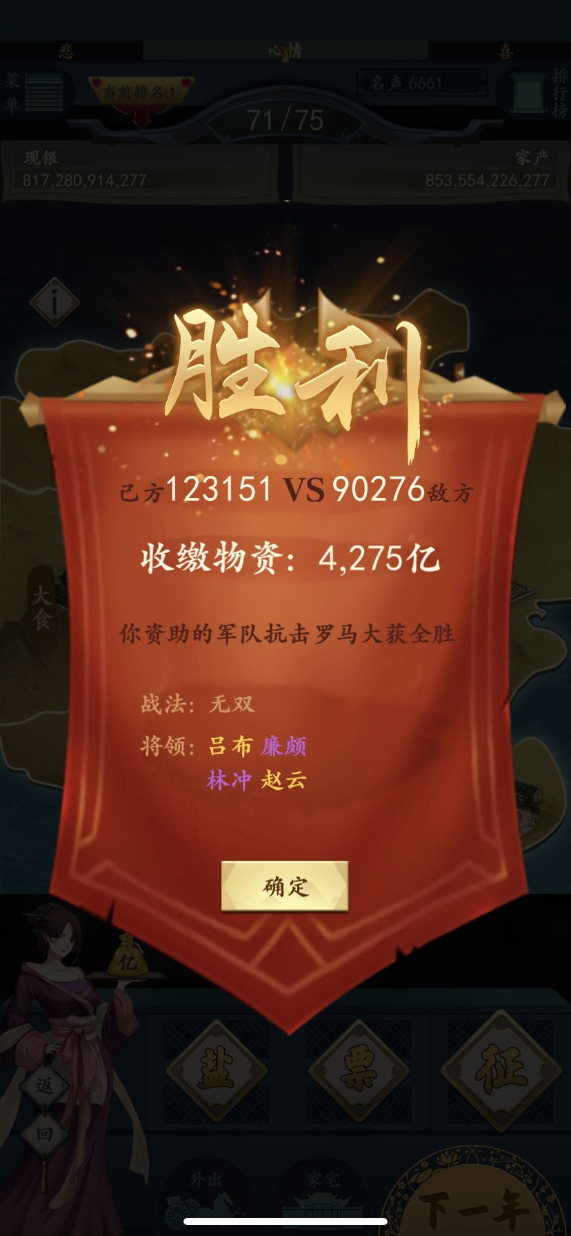 运气还不错。放弃了一次 第二次选将大概不到600亿就选出来了