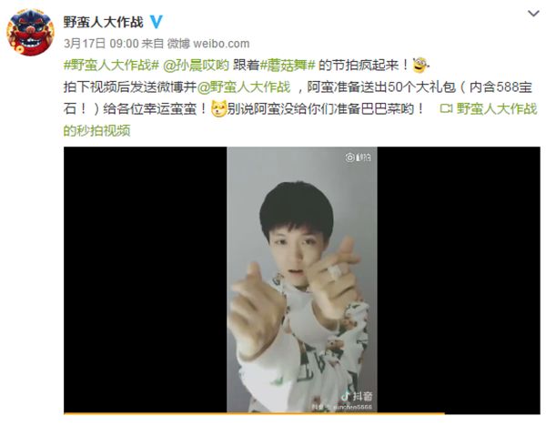 简单明快的舞蹈,配合上魔性洗脑的歌曲,真是想不被人记住都难!同时官方微博与微信也展开了模仿活动,活动期间只要使用抖音拍摄蘑菇舞视频发布微博并@野蛮人大作战官方,或是发送至野蛮人大作战微信公众号都可以直接获得价值588的原谅宝石礼包一份,足够直接用来购买新英雄!