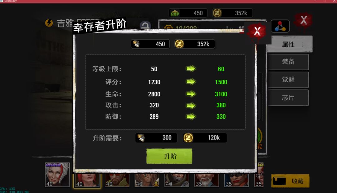 正在进行提升自我的幸存者,在幸存者升级后数值会大大提升哦
