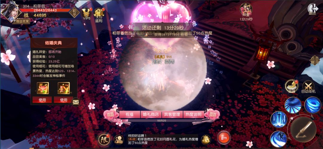 213级开启仙侣系统后,便踏上了提亲之路(仙侣不包分配,请自行物色)。结婚三部曲小汐妹就不多提了,要注意的是带上好友哦,丰富的互动形式一起玩耍,而且品尝宴席可是有丰厚奖励的呢