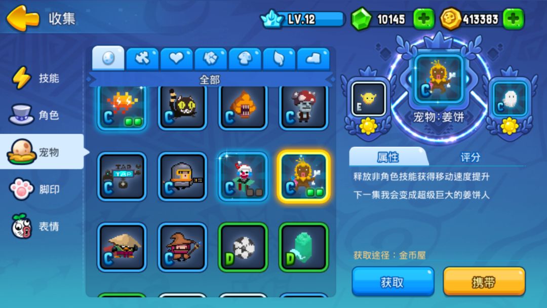 我很佩服也很感谢游戏的设计者,他们把最好的宠物设置为C级宠物,让所有玩家都可以拥有,每只宠物解锁到20级也才两万金币左右。
