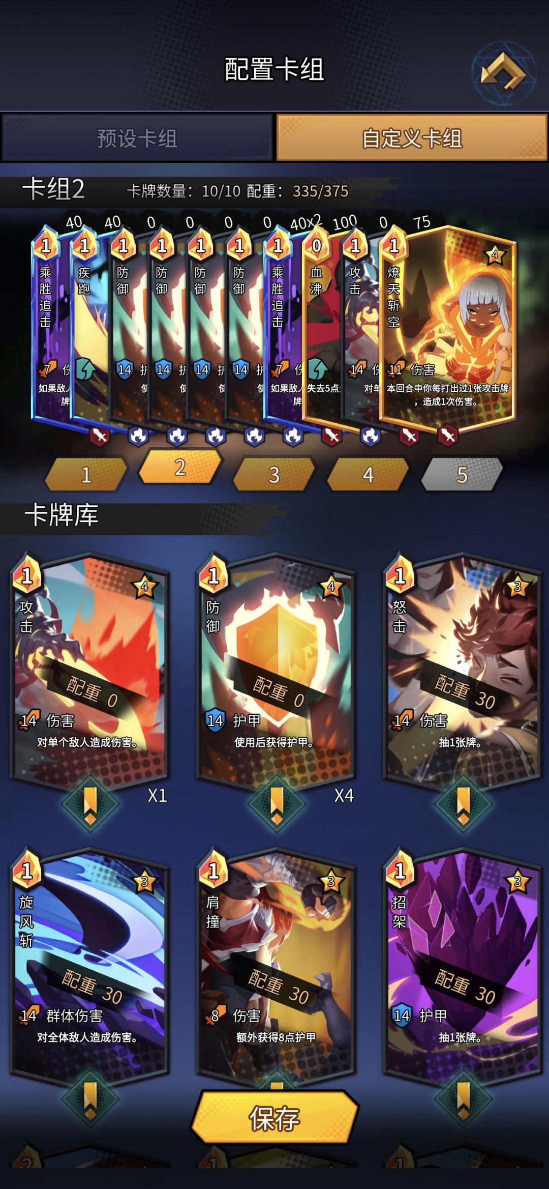 3配重335,理论上260也够,把斩空和应急防御拿掉,只要260,但是怕你们卡牌伤害不够,30张牌打完被措手不及卡手。