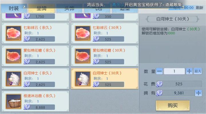 白河的外形呆萌可爱,坐骑属性又非常的强大,它的获取途径是什么呢?其实白河绅士的获取方式非常简单,道友们可以直接进入坐骑商店购买。在坐骑商店中白河绅士分30天和永久版两种购买方式,30天版本的白河绅士售价525灵玉,永久版本的白河绅士售价2625灵玉。由于灵玉可以通过超值修道卡等途径来获得,想要购买一只白河绅士实际花费其实并不高。