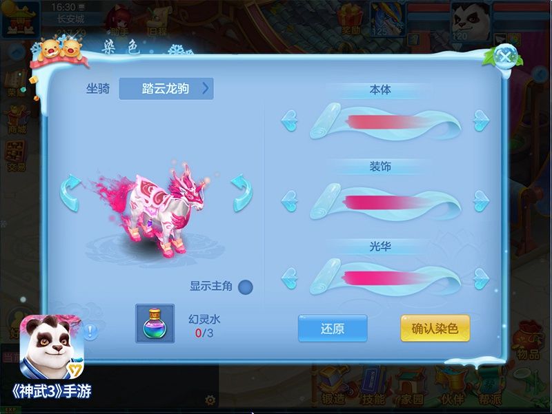 《神武3》手游全新坐骑染色今日开启,想要好好装扮“爱车”过新年的小伙伴们千万不要错过机会
