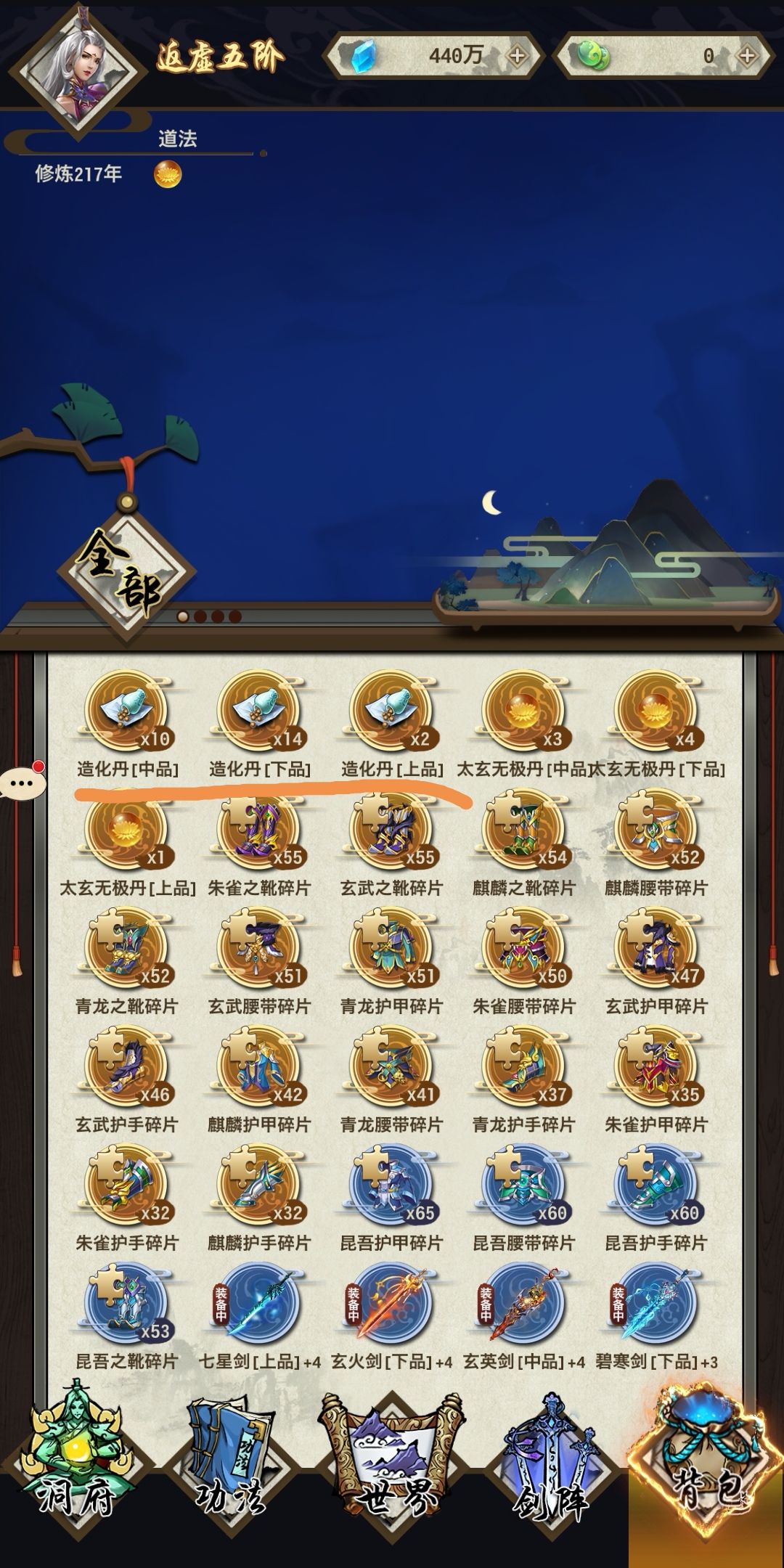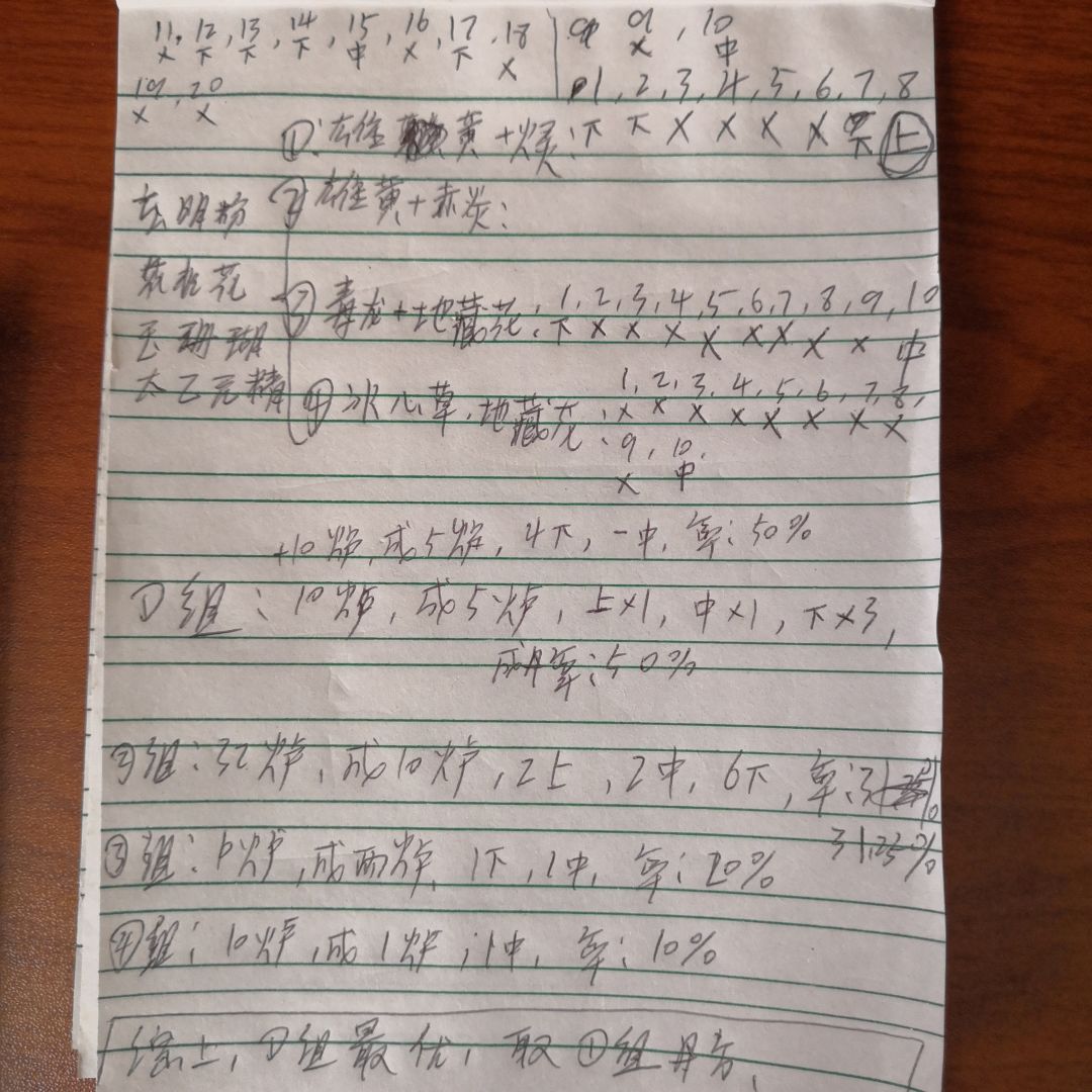 第一组最优丹方:玄明粉,花非花,玉珊瑚,太乙元精,雄黄,火灵果。