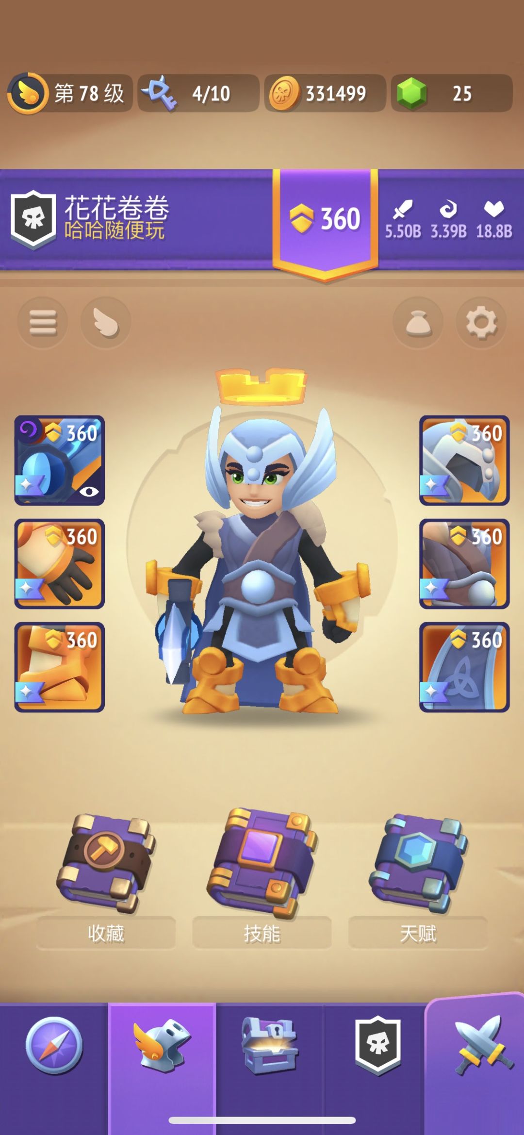 先自曝下装备和进度,装备全身360,等级78级。装备360其实花上2周很简单,78级也不是一个肝炸的等级,自我感觉中规中矩。目前靠跳跳冰荒野90层已过,本周的赛季打了58层,难度是376。
