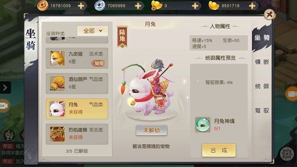 这是一只萌动可爱的灵兽玉兔,同时她也是玩家可获得的坐骑之一,只要累计登录七天,即可获得月兔神魂召唤月兔成为坐骑,可别小瞧了这只外表可爱的月兔,她所能够提供的属性加成超高,只要培养得当,也能够成为一只强大的神级坐骑哦。