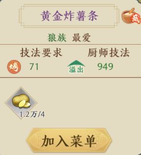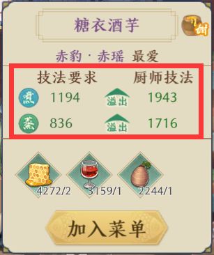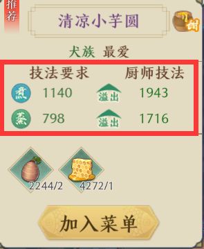 评价越高的菜收益就越高,目前超凡>精湛>娴熟>入门>生疏>技法不足。
