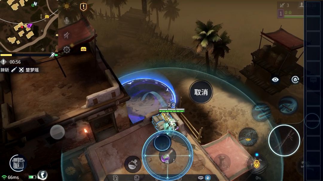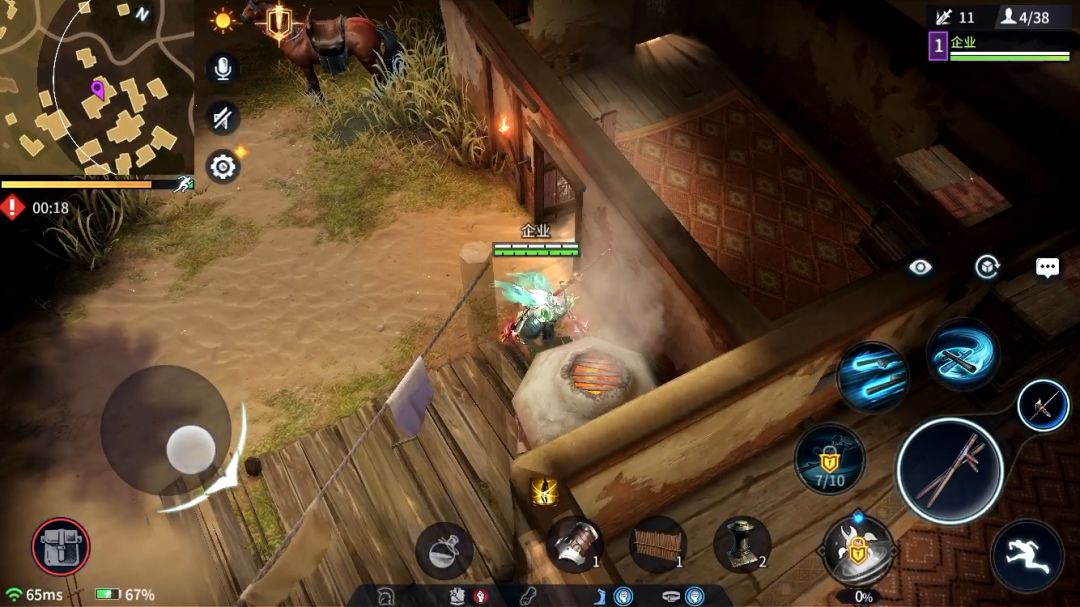 若对手不进行追击则可以安全进行休整状态准备反击。以下为实战中的例子:对手突进技能或者击飞技能打到墙边时(如长枪2技能),可以在接触眩晕后快速上房躲避后续技能连击。等对手技能交完同时自身技能基本都在,就可以下房打一个反击,或脱战休整寻找进攻时间。这个打法能利用飞檐走壁系统对自身形成有利局面。这就为本来劣势的一方提供了更多的可操作性,不会一味的挨打,也给游戏带来了更多的可玩性与博弈性。