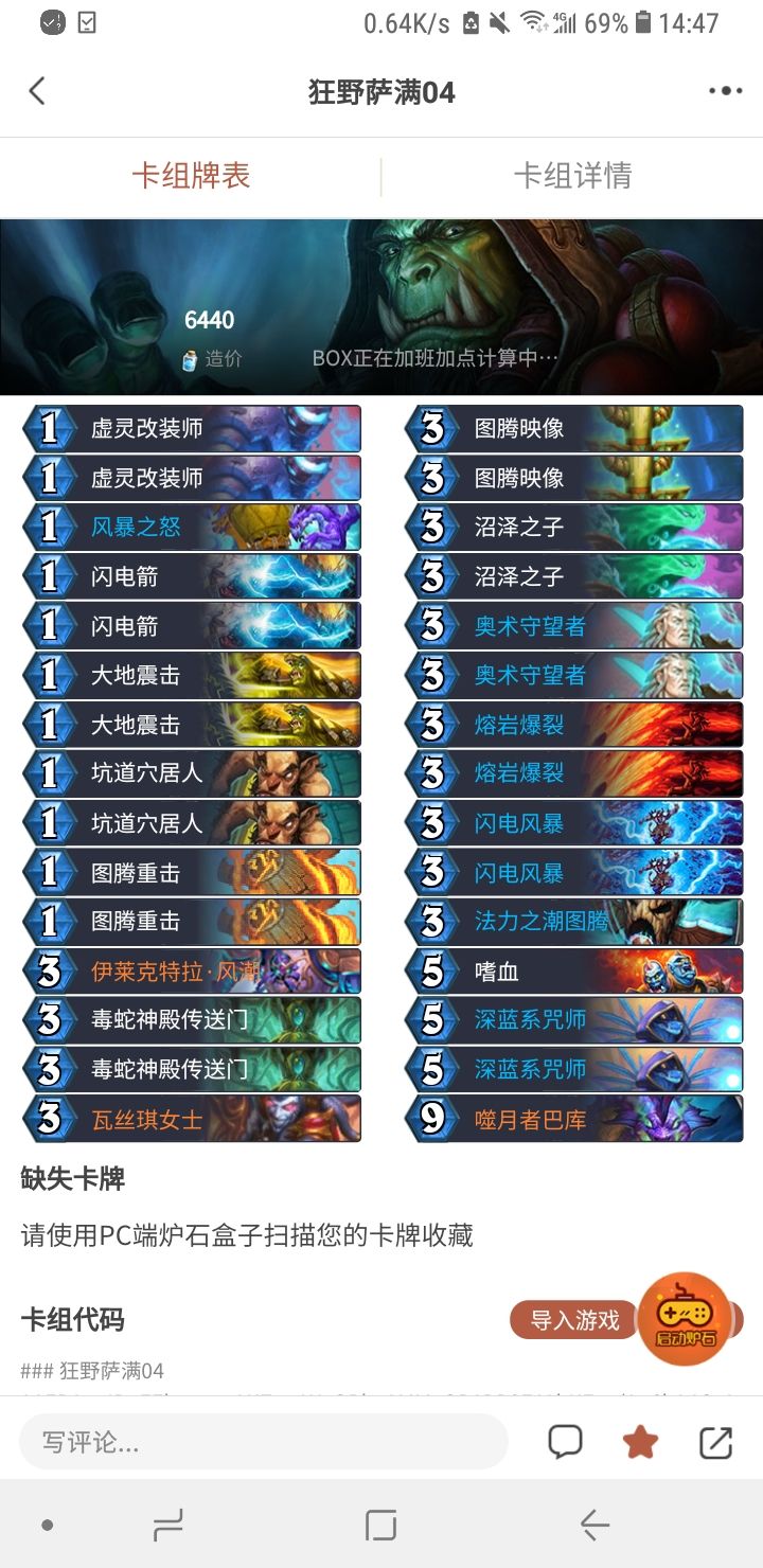 实测效果不错,这套牌有几个要点1.瓦斯琪没有可以不带2.风潮比瓦斯琪关键,可以配合复制与马桶一回合过好几张牌,还可以提高斩杀线3.风暴之怒一张就够,帮助站场,有时还可以帮助穴居人加工4.535看情况吧,应该还行,我换了两张海盗+帕奇斯,前期保护图腾5.起手留神殿,356,113,瓦斯琪,图腾映像,快攻留闪电,正常打很强6.嗜血一张就够,两张卡手7.121太强了,打爆发一流,对了复制可以把121点出来的法强一并复制